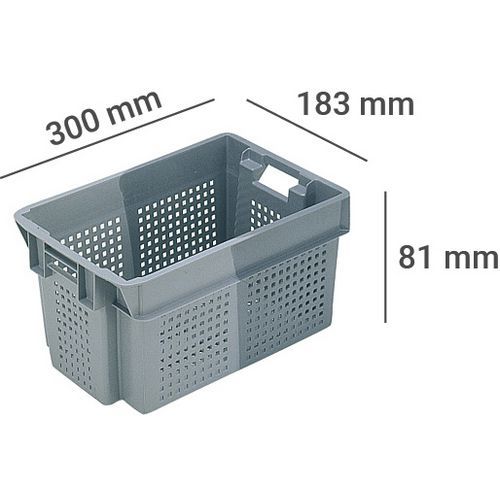 60% zasunutie pri stohovaní pre úsporu miesta pri skladovaní. Jednoduchá manipulácia vďaka veľkým rukovätiam. Kompatibilný so všetkými typmi dopravníkov vďaka hladkej spodnej časti. Vďaka dvojfarebnej štruktúre je možné ľahko identifikovať pozície pre stohovanie/ukladanie. Záruka výrobcu pre zákazníka : 3 roky Max. zaťaženie (kg) : 30 kg
