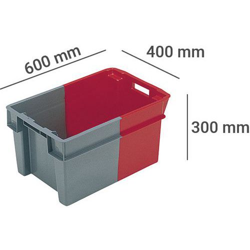 60% zasunutie pri stohovaní pre úsporu miesta pri skladovaní. Jednoduchá manipulácia vďaka veľkým rukovätiam. Kompatibilný so všetkými typmi dopravníkov vďaka hladkej spodnej časti. Vďaka dvojfarebnej štruktúre je možné ľahko identifikovať pozície pre stohovanie/ukladanie. Záruka výrobcu pre zákazníka : 3 roky Max. zaťaženie (kg) : 30 kg