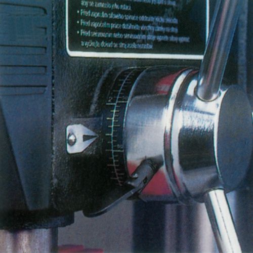 - Nastavenie hĺbky vŕtania- zaisťuje nastaviteľný doraz so stupnicou. Táto funkcia umožňuje užívateľovi vŕtať viacero otvorov do rovnakej hĺbky. Nastavenie otáčok - sa dosiahne manuálnym presunutím klinového remeňa na príslušne