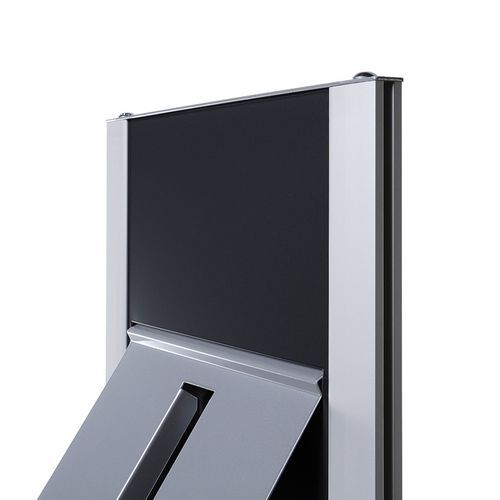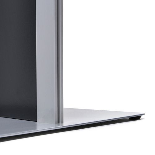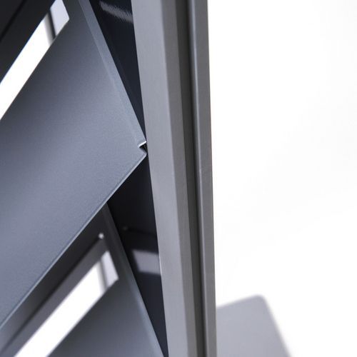 Modulárne stojany s policami na brožúry formátu A4. Kovové police na prospekty sú rovnomerne rozmiestnené na prednej strane stojana. Držiak umožňuje individuálnu kombináciu oddielov a zásobníkov na brožúry. Dvojfarebná hliníková konštrukcia zaisťuje vysokú stabilitu držiaka, bočné profily stojana sú eloxované. Vyrobené v EÚ