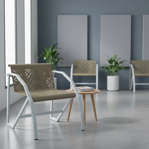 - Kovové sedadlá z perforovaného plechu v rôznych farbách.