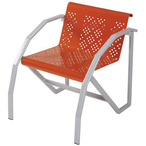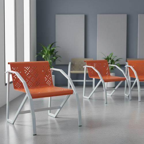 - Kovové sedadlá z perforovaného plechu v rôznych farbách.