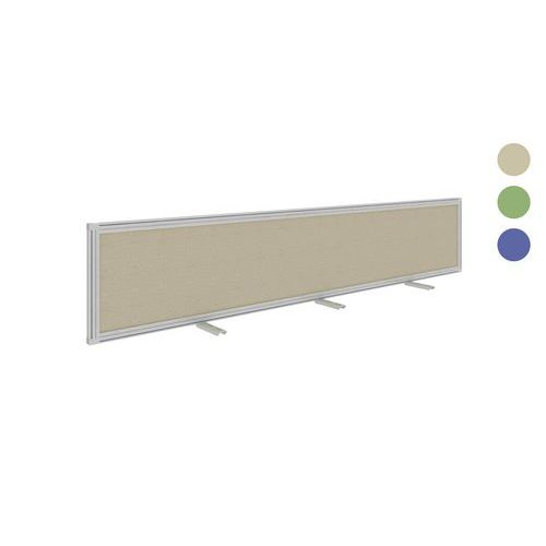 Paravány k stolom Alfa v rôznych farbách. Hliníkový rám, drevotriesková výplň a polyesterový poťah, hr. 24,6 mm. Jednoduchá montáž. Dĺžka paravánu je 180 cm a výška 37 cm. Odolnosť proti ohňu podľa BS EN 1021-1.2. Stálofarebnosť 6+. Odolné proti oderu a proti tvorbe chumáčikov.