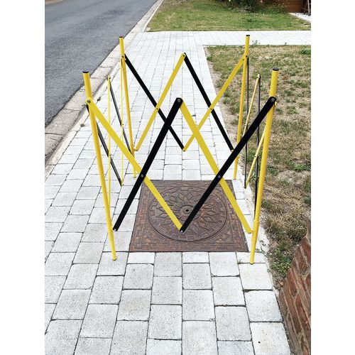 | Názov produktu | Štvorcová kovová mobilná zábrana Golem, skladacia, 100 x 100 cm, žltá/čierna |
