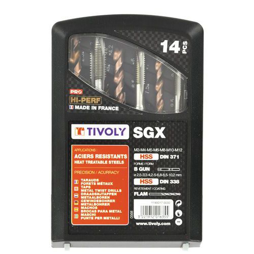 | Názov produktu | Súprava vrtákov Fusio HSS Tivoly + závitníky, 14 ks |