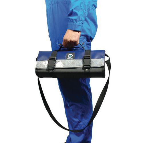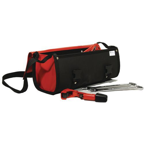 Zahŕňa: 1 pružný zips a 2 klipy. 1 veľký úložný priestor na náradie . 1 centrálna rukoväť na prenášanie . 2 bočné držadlá na prenášanie. 1 ramenný popruh.