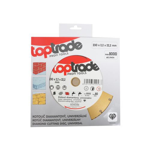 | Názov produktu | TOPTRADE kotúč diamantový, univerzálny, 230 x 2,0 x 22,2 mm |