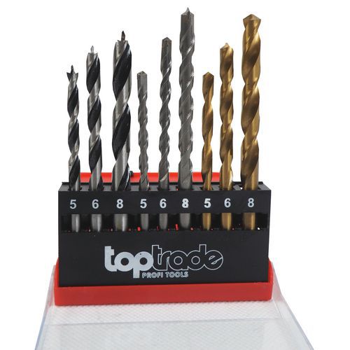 TOPTRADE vrták štandard, do dreva, kovu, betónu, balenie 9 ks
