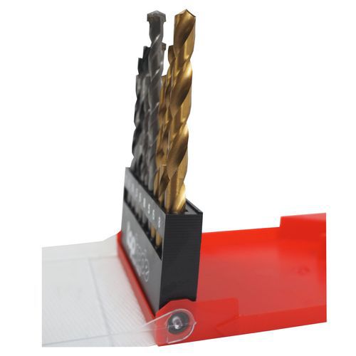Súprava najpoužívanejších vrtákov do dreva, kovu a betónu pre domácich majstrov aj remeselníkov v praktickom plastovom boxe.