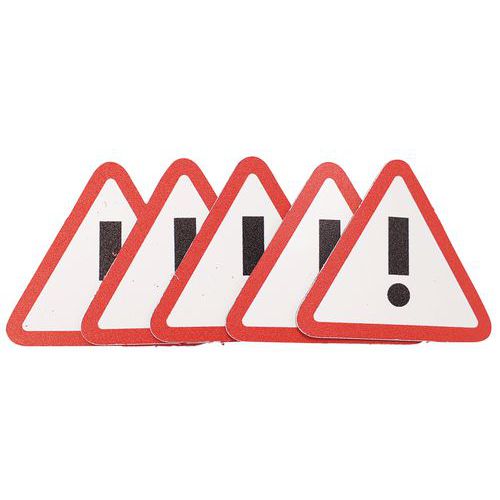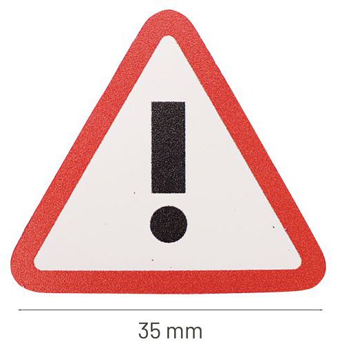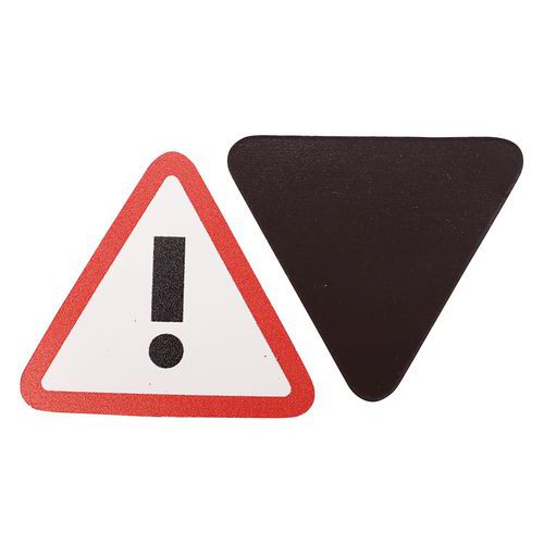 Magnet s výkričníkom v tvare trojuholníka na výstražné označenie dôležitých dokumentov a informácií. Viditeľné čierno-žlté alebo bielo-červené prevedenie.