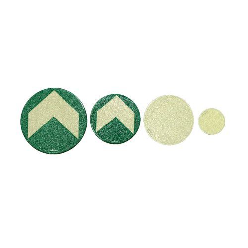 Fotoluminiscenčné podlahové značky na vyznačenie únikovej cesty. Protišmykové, s možnosťou upevnenia na koberec suchým zipsom alebo na podlahu samolepiacou vrstvou.