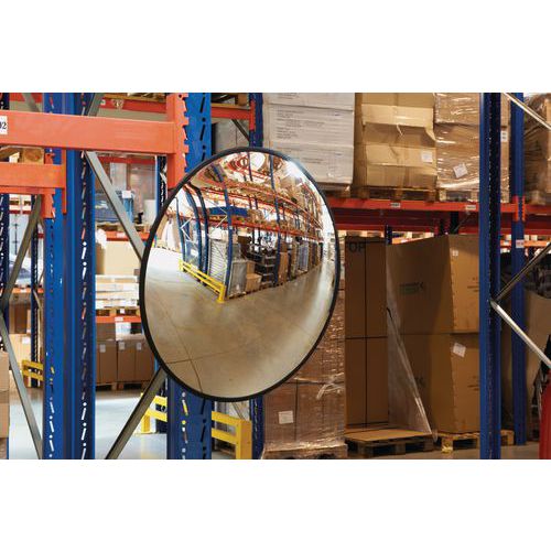 Vnútorné okrúhle zrkadlá slúžia na zvýšenie bezpečnosti a prehľadnosti na neprehľadných a slepých miestach v skladoch, priemyselných halách a pod. Je možné ich použiť tiež do predajní na odstrašenie zlodejov. Súčasťou balenia je držiak v tvare labutieho krku. priemer odrazovej plochy: 300 – 800 mm tvar: kruh materiál: akryl spôsob prichytenia: držiak pozorovacia vzdialenosť: 4 – 15 m použiteľné v prostredí: interiér farba rámu: čierna hmotnosť: 0,5 – 1,2 kg dodáva sa vrátane montážneho materiálu