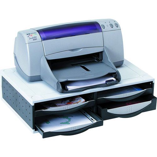 - Sivý stojan na upevnenie k stolovej doske. S otočným výsuvným ramenom z hliníka a odkladacou doskou naklonenou smerom k používateľovi. Využiteľný ako držiak na telefón a v kombinácii s rozširujúcimi prvkami aj na fax alebo notebook.