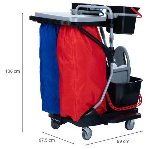 Upratovací vozík Manutan Expert so žmýkačom a držiakom na vrecia, 2 x 15 l, 2 x 6 l