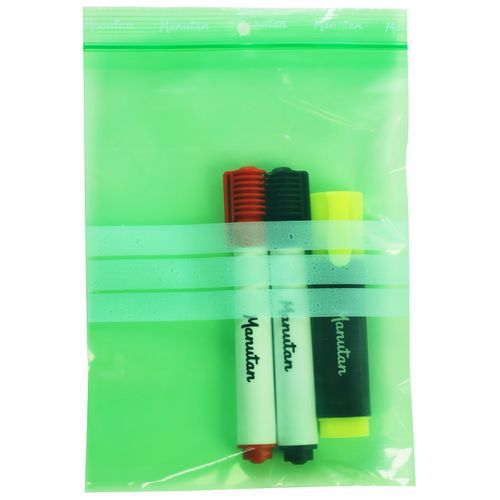 Uzatvárateľné recyklované vrecká so zipsom Manutan Expert, zelené, 100 ks