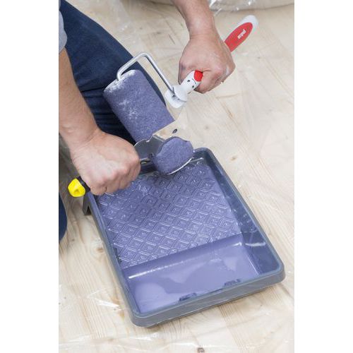 - Zásobník s hrotmi na očistenie prebytočnej farby z valčeka.