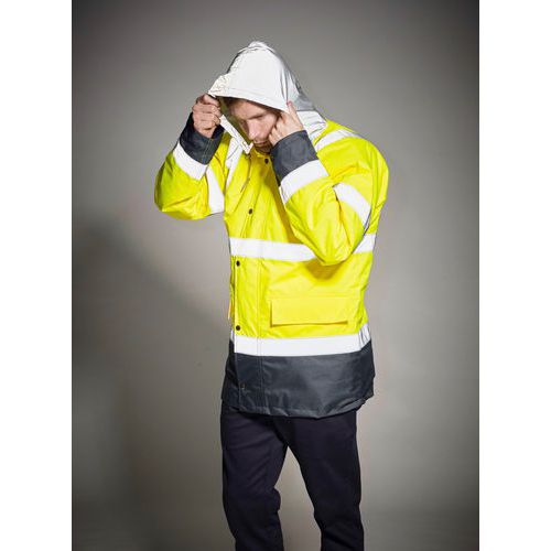 Reflexná kontrastná vetrovka s možnosťou použitia 4 rôznych kombinácií - ľahká vetrovka vetrovka s teplou vložkou obojstranná samostatná vložka. Ideálna do rôznych poveternostných podmienok. Poskytuje vysokú viditeľnosť. Multifunkčné vrecká lepené švy zbaliteľná kapucňa prístup pre potlač.