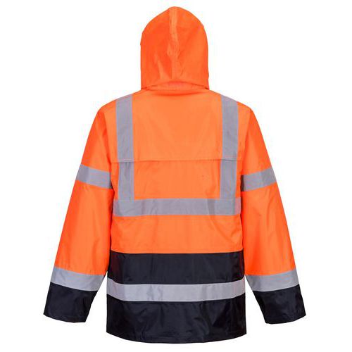 Klasická reflexná kontrastná vetrovka do dažďa. Má odnímateľnú kapucňu väčšie vrecká a priedušnú chrbtovú časť. CE certifikované Kontrastné panely Očká a zadný otvor pre vetranie Reflexná páska Lepené švy UPF 50+ 5XL Vnútorná elastická manžeta Odolné proti vetru Nastaviteľná sťahovacia šnúra a prepínač Hlboké vrecká 2 vrecká Zbaliteľná kapucňa Texpel Splash Bio pohybová páska