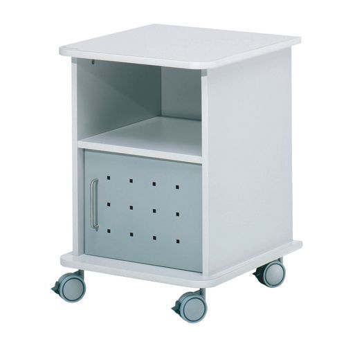 - Kancelársky vozík na tlačiareň s otvorenou a uzatvárateľnou priehradkou s perforovanými kovovými dvierkami. Nosnosť do 100 kg.