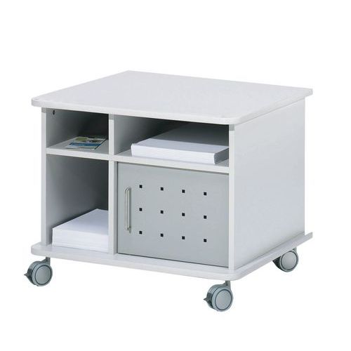 - Vozík na tlačiareň do kancelárie s tromi otvorenými a jednou uzatvárateľnou priehradkou s perforovanými kovovými dvierkami. Nosnosť do 100 kg.