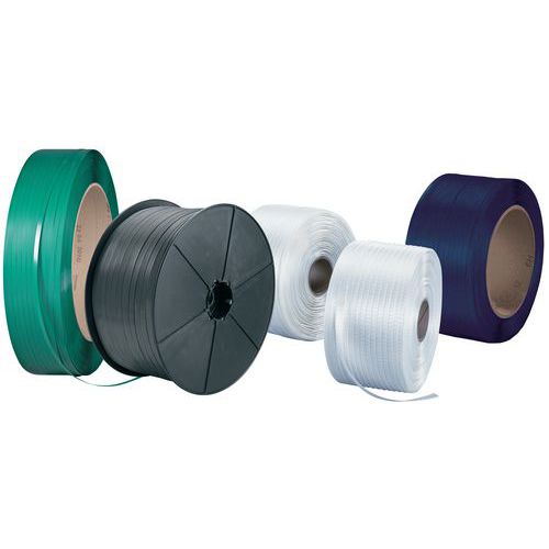 - Polyesterové viazacie pásky s rôznymi rozmermi na páskovanie ťažkých kartónov alebo paletových boxov.