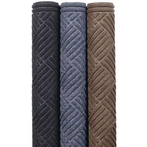 Robustná vstupná rohož s patentovanou konštrukciou Aqua Dam so 4 textilom potiahnutými zosilnenými okrajmi koberca, ktoré fungujú ako záchytná vanička zadržiavajúca až 4 litre vody na meter štvorcový. Vstrekovaný textilný povrch na patentovanom dizajne diamantových hrotov s nesmerovým drážkovaním má dvojitý účinok na zoškrabávanie a stieranie nečistôt. Podrážka z hrubej gumy poskytuje maximálnu odolnosť. Čapy pod podrážkou minimalizujú pohyb rohože na všetkých povrchoch a zvyšujú rohož, aby vlhká podlaha mohla vyschnúť aj pod rohožou.
