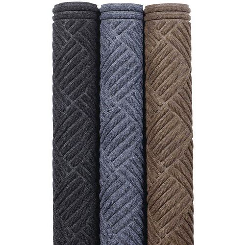 Robustná vstupná rohož s patentovanou konštrukciou Aqua Dam so 4 textilom potiahnutými zosilnenými okrajmi koberca, ktoré fungujú ako záchytná vanička zadržiavajúca až 4 litre vody na meter štvorcový. Vstrekovaný textilný povrch na patentovanom dizajne diamantových hrotov s nesmerovým drážkovaním má dvojitý účinok na zoškrabávanie a stieranie nečistôt. Podrážka z hrubej gumy poskytuje maximálnu odolnosť. Čapy pod podrážkou minimalizujú pohyb rohože na všetkých povrchoch a zvyšujú rohož, aby vlhká podlaha mohla vyschnúť aj pod rohožou.