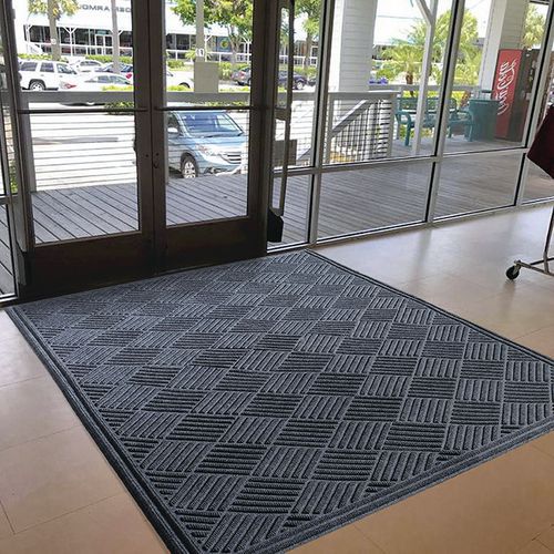 Robustná vstupná rohož s patentovanou konštrukciou Aqua Dam so 4 textilom potiahnutými zosilnenými okrajmi koberca, ktoré fungujú ako záchytná vanička zadržiavajúca až 4 litre vody na meter štvorcový. Vstrekovaný textilný povrch na patentovanom dizajne diamantových hrotov s nesmerovým drážkovaním má dvojitý účinok na zoškrabávanie a stieranie nečistôt. Podrážka z hrubej gumy poskytuje maximálnu odolnosť. Čapy pod podrážkou minimalizujú pohyb rohože na všetkých povrchoch a zvyšujú rohož, aby vlhká podlaha mohla vyschnúť aj pod rohožou.