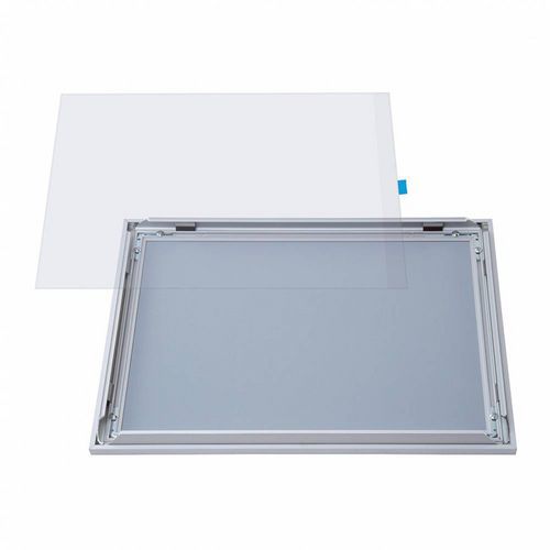 Vonkajšie klip rámy s dizajnovým profilom na umiestnenie plagátu, fotografií a reklamy. Vybavený vodoodolnou fóliou s UV ochranou. Rýchla a jednoduchá výmena plagátu odklopením bočných hliníkových profilov. Zadná stena je vyrobená zo sivého plastu. Možnosť umiestnenia na šírku aj na výšku.