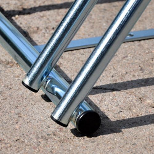 Stojan s rúrkovou konštrukciou je vhodný na všetky bicykle a plášte do šírky 80 mm. Povrchová úprava zinkovaním. Priemer horných rúrok 28 mm. Priemer hornej rámovej rúrky 25 mm.