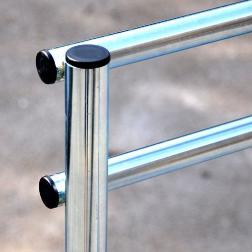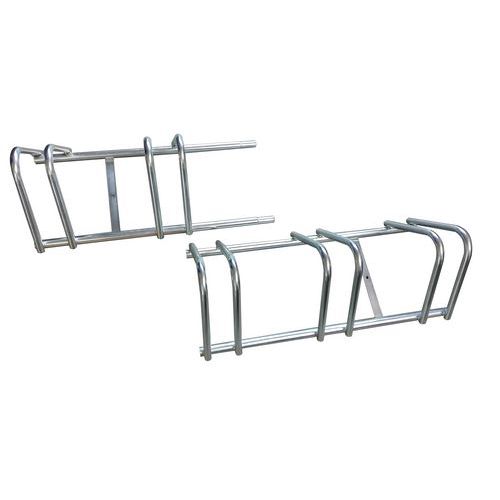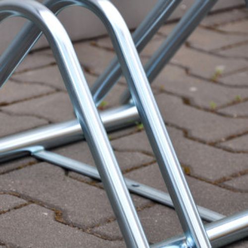 Široký stojan s rúrkovou konštrukciou na všetky bicykle a plášte do šírky 75 mm. Povrchová úprava zinkovaním. Odolné pozinkované rúry s priemerom 28 a 25 mm. Vyrobené v EÚ