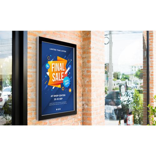 - ESG bezpečnostné sklo chráni plagát a zaručuje dlhú životnosť.