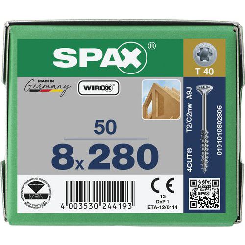 Vruty do dreva so zapustenou hlavou Spax TX ø 8 mm, 280 mm