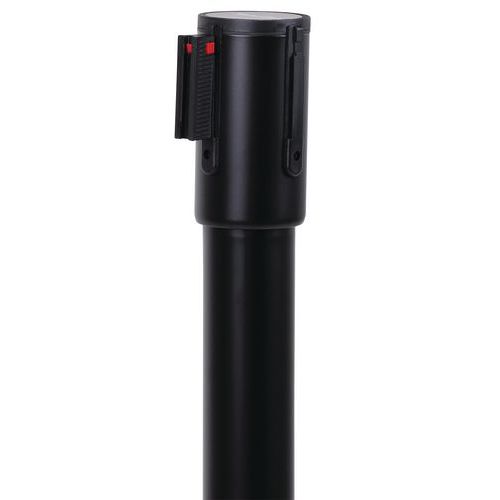 Vymedzovací stĺpik s pásom Manutan Expert Black, základňa s kolieskami, 5 m, čierny/žltý