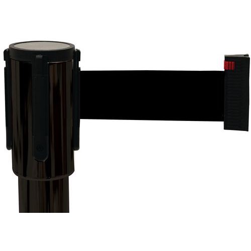 Vymedzovací stĺpik s pásom Manutan Expert Black, základňa s kolieskami, 5 m, čierny