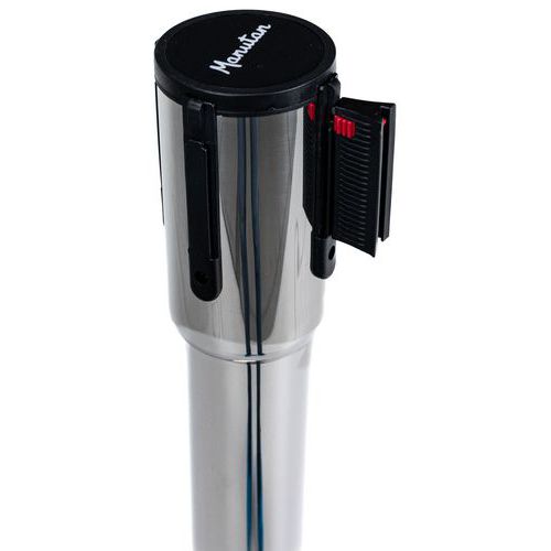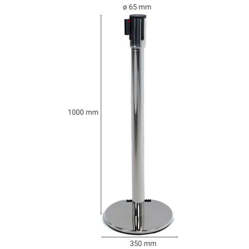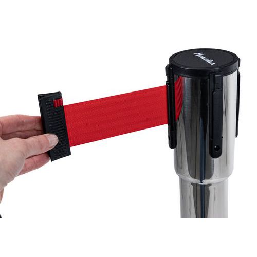 Vymedzovací stĺpik s pásom Manutan Expert Chrom, základňa s kolieskami, 5 m, červený