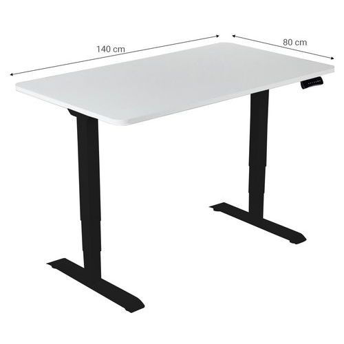 Výškovo nastaviteľný písací stôl Manutan Expert, čierna základňa, šírka 140 cm, biela