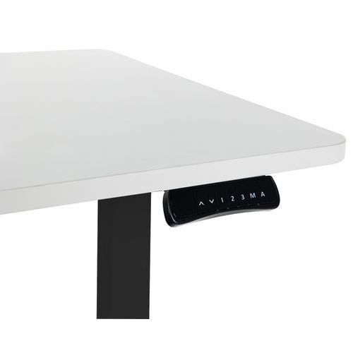 - Ergonomické výškovo nastaviteľné stoly Manutan Expert s čiernym podnožím.