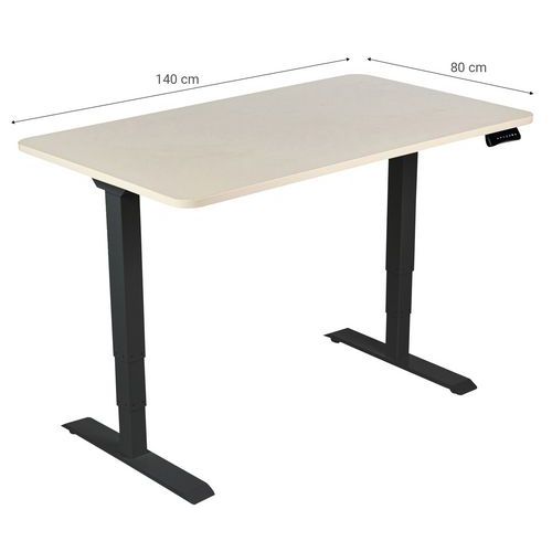 Výškovo nastaviteľný písací stôl Manutan Expert, čierna základňa, šírka 140 cm, dub