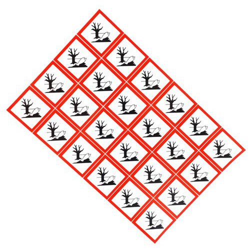 Výstražné CLP tabuľky Manutan Expert - Riziko pre životné prostredie, samolepiace, 24 ks