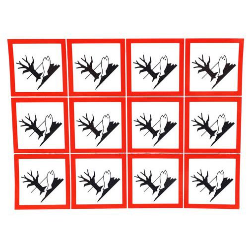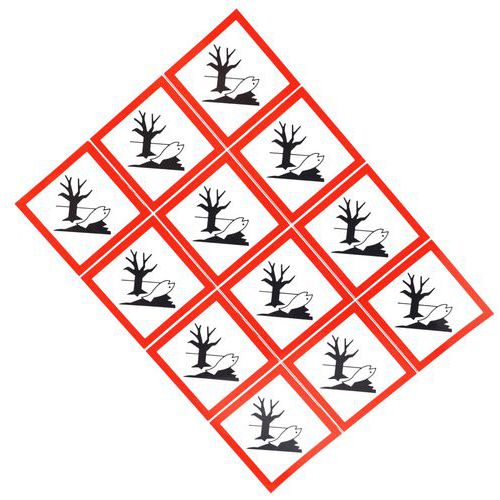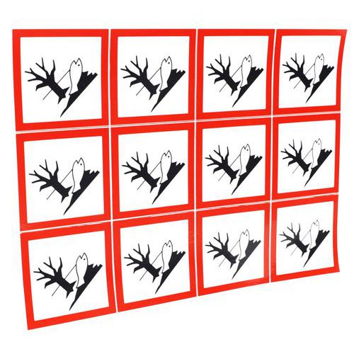 Výstražné CLP tabuľky Manutan Expert - Riziko pre životné prostredie, samolepiace, 12 ks