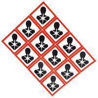 Výstražné CLP tabuľky Manutan Expert - Zdravotné riziká, samolepiace, 12 ks