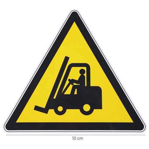- Výstražné tabuľky označujúce nebezpečenstvo, ktoré môže spôsobiť pohyb priemyselných vozidiel, ako sú vysokozdvižné vozíky alebo manipulačná technika.