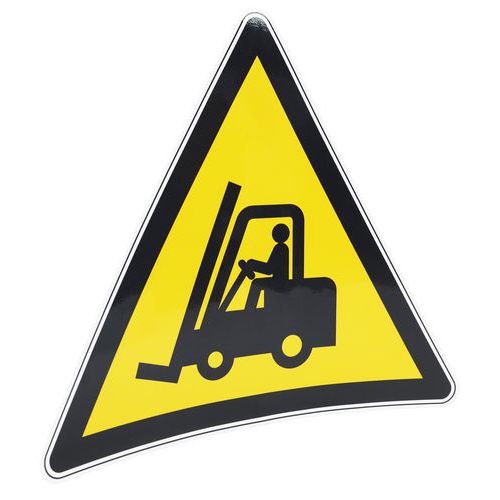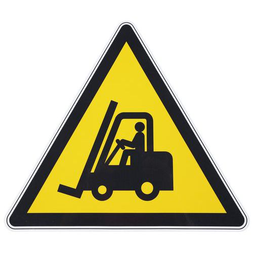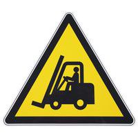 - Výstražné tabuľky označujúce nebezpečenstvo, ktoré môže spôsobiť pohyb priemyselných vozidiel, ako sú vysokozdvižné vozíky alebo manipulačná technika.