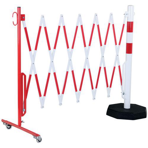 Výsuvná kovová zábrana na kolieskach Crash Stop, stĺpik na vysoké zaťaženie, červená/biela, dĺžka 360 cm