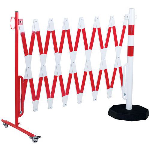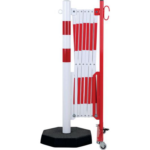 Výsuvná kovová zábrana na kolieskach Crash Stop, stĺpik na vysoké zaťaženie, červená/biela, dĺžka 400 cm