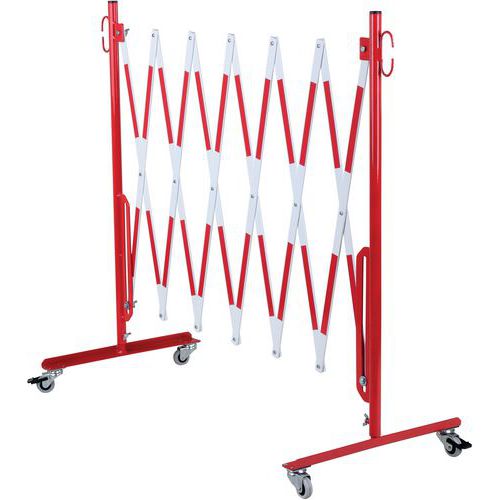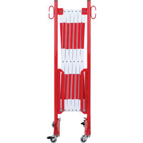 Výsuvná kovová zábrana na kolieskach Dancop, montáž na stenu, červená/biela, dĺžka 360 cm