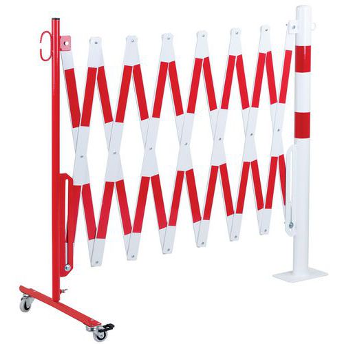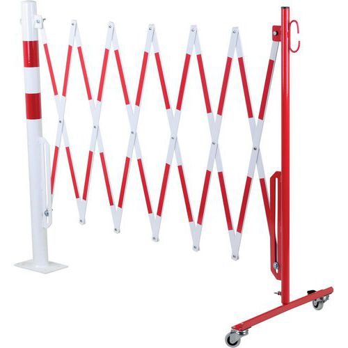 - Výsuvné oceľové zábrany na kolieskach a okrúhlom stĺpiku.