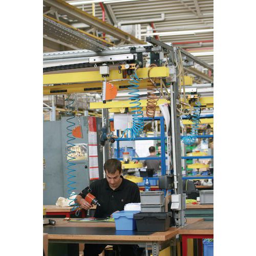 Pružinové navijaky slúžia na zavesenie ručného dielenského náradia a prípadnú fixáciu v ľubovoľnej výške. Náradie tak máte vždy poruke, bez nároku na odkladaciu plochu. Je možné použiť tiež ako závesné body pri montážnych prácach. Zavesené bremeno sa po každom vytiahnutí do ľubovoľnej pracovnej polohy vráti späť do východiskovej polohy. Východiskovú polohu je možné v rámci dĺžky závesu nastaviť predpätím ťahu pružiny. Vyvažovač má doplnkové bezpečnostné prichytenie a izolované prichytenie karabínového háka.