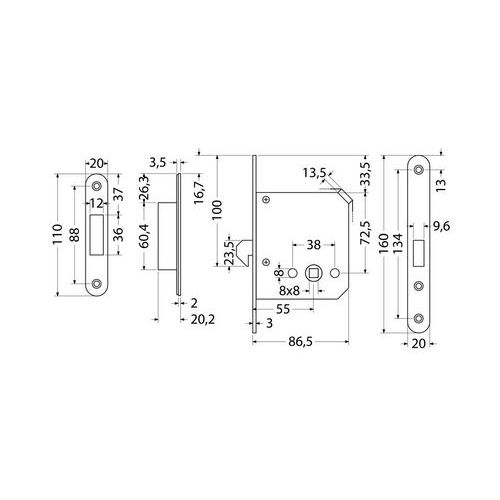 Zadlabacie hákové zámky pre posuvné vráta s WC kľučkou